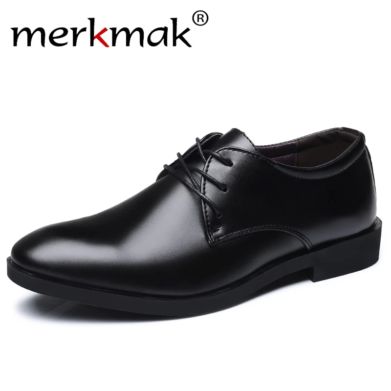 Special Offer for merkmak Men's Brand Leather Formal Shoes Lace Up dress shoes Oxfords Fashion Retro Shoes Elegant wo