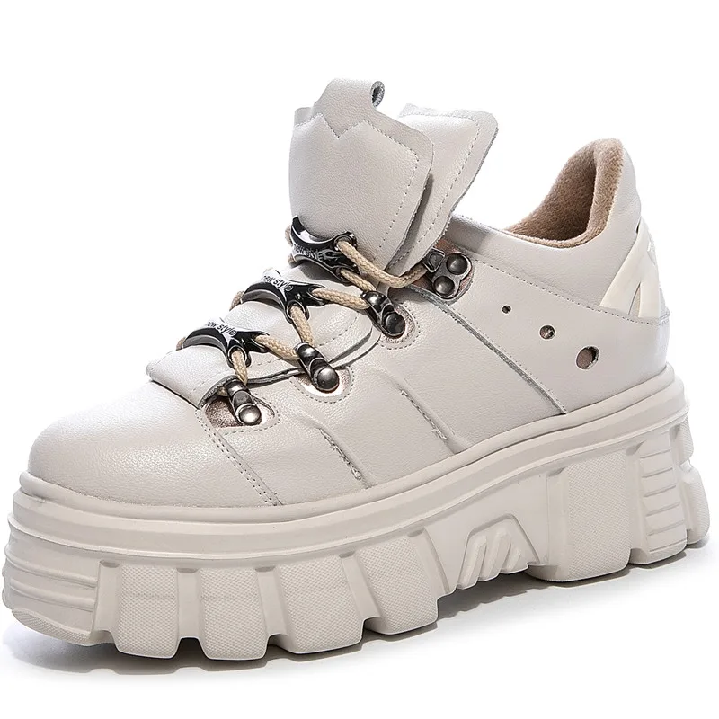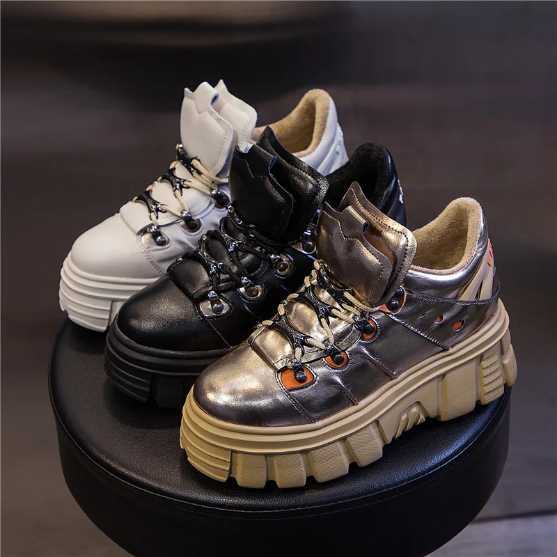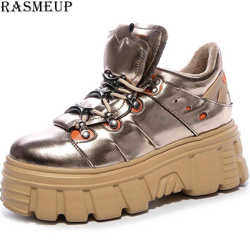RASMEUP 8CM Height Increasing Women's Chunky Sneakers Genuine Leather Fashion Winter Women Platform Shoes Trainers Lady Footwear