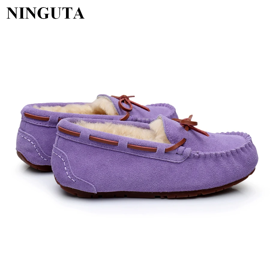 NINGUTA quality fur suede loafers shoes woman winter casual women shoes