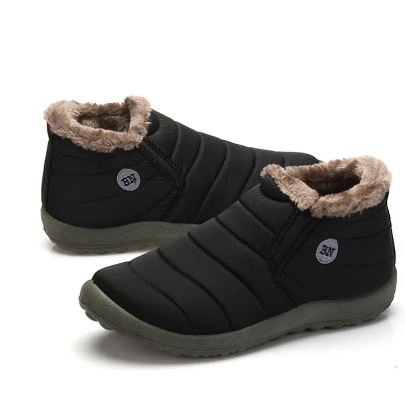 FONIRRA Men Winter Boots Male Snow Ankle Boots Solid Color Warming Fabric Fur Flock Winter Shoes Men Leather Casual Men Boot 937