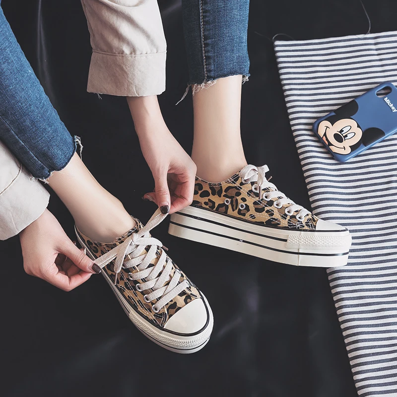 0 Response to "Promo Chance for Women Leopard Shoes Platform high heel Canvas vulcanized sneakers New Arrival Women Flat Jogging Br"